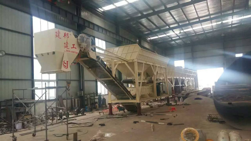 廠房內(nèi)剛組裝好的混凝土攪拌站
